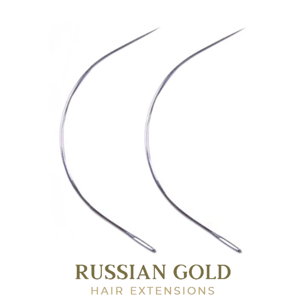 Gebogen naald voor het vastnaaien van een Hair Weave.
